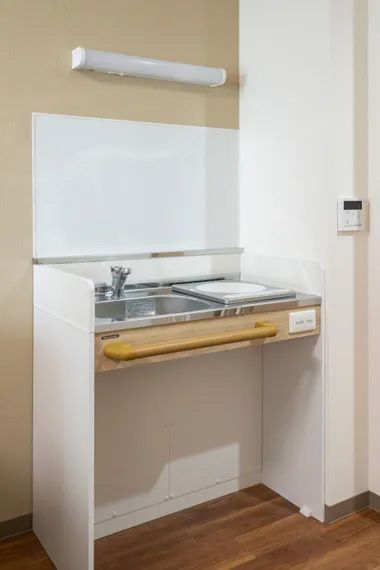 共用部にある談話スペースや食堂は利用者の憩いの場となっており、日中はこれらの場所に出ることで他の入居者との交流を楽しめます。食堂で提供される食事はオプションサービスとなっており、3食用意してもらえるのはもちろん、朝のみ・夕のみといったライフスタイルに合わせた利用が可能です。キッチン付きの居室も用意されており、自立されている方は居室内で自炊も楽しめます。